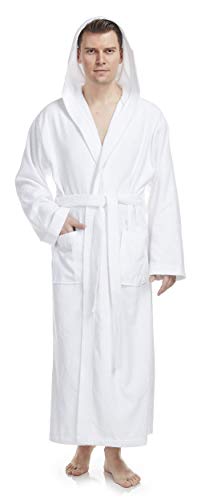 Arus Men's bathrobe with hood, 100% cotton terry, extra long, XXL-3XL long, White