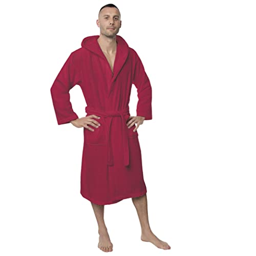 Bathrobe Men 100% Cotton OEKO-TEX® Certified - XL Burgundy - Premium Dressing Gown Men & Women Absorbent Towelling with Hood, 2 Pockets, Belt