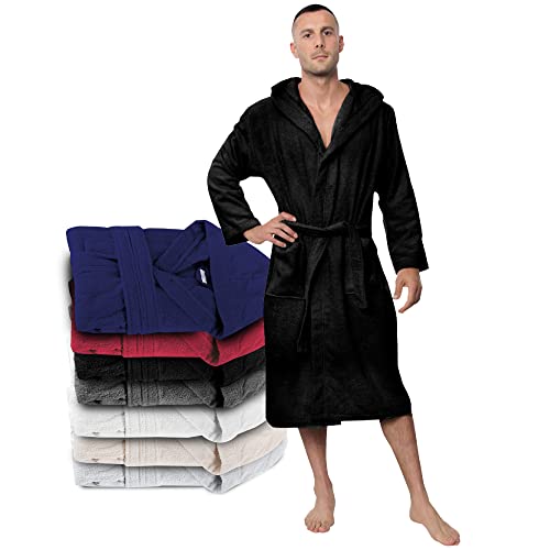 Bathrobe Men & Women 100% Cotton OEKO-TEX® Certified - XXXL Black -Premium Dressing Gown Mens Absorbent Towelling with Hood, 2 Pockets, Belt