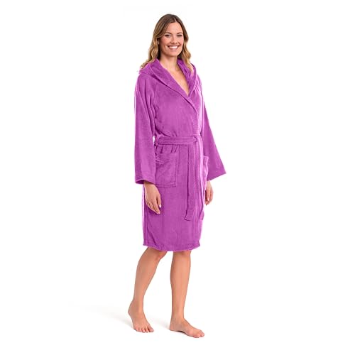 CelinaTex 5001186 Terry Towelling Bathrobe with Hood Cotton Sauna Gown for Men and Women Quality Dressing Gown Fluffy Cuddly Öko-Tex Montana Hooded Bathrobe Size S Plum