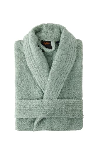 CelinaTex Bathrobe with Shawl Collar or Hood XL Turquoise Cotton Sauna Gown Women's Men's Terry Towel Dressing Gown