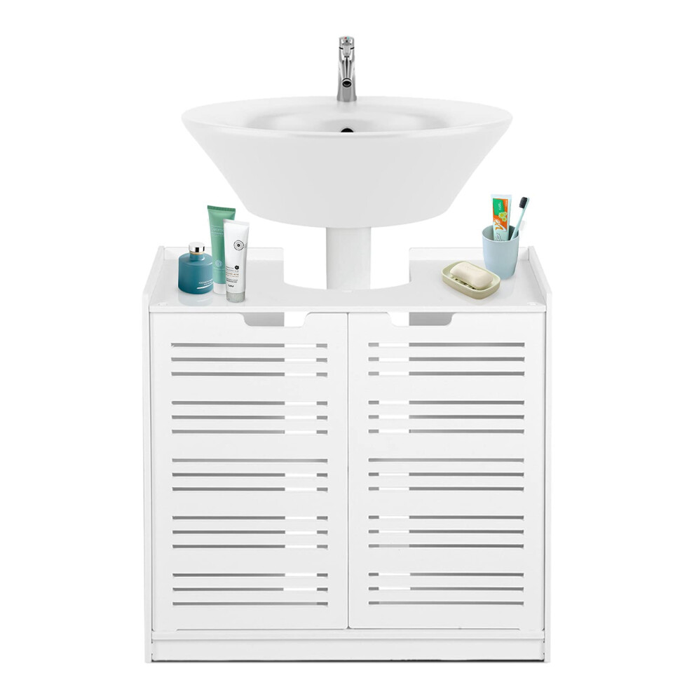 Homme Concept - White Under Sink Bathroom Storage Cabinet Free Standing 2 Doors Wooden Multi-purpose Organiser Basin Cupboard with Shelf Unit Flat Packed