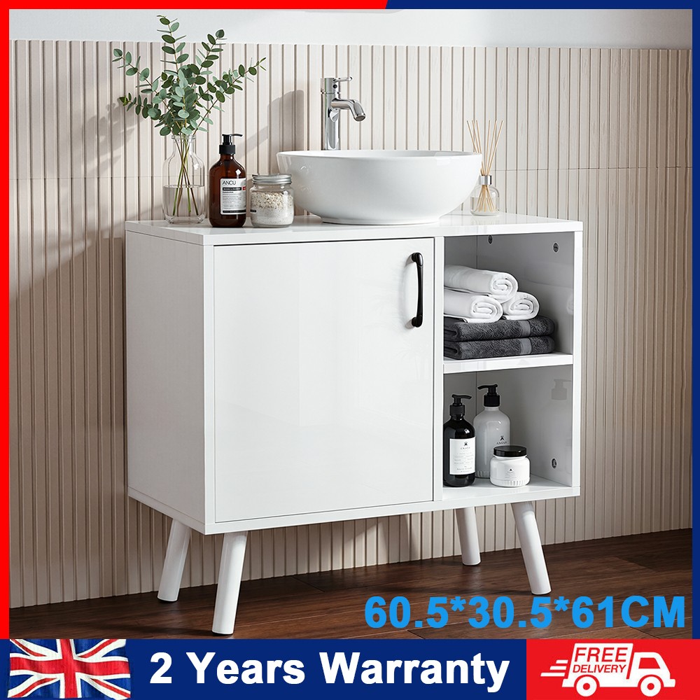 Under Sink Cabinet Bathroom Basin Unit Cupboard Storage Furniture & Shelf White