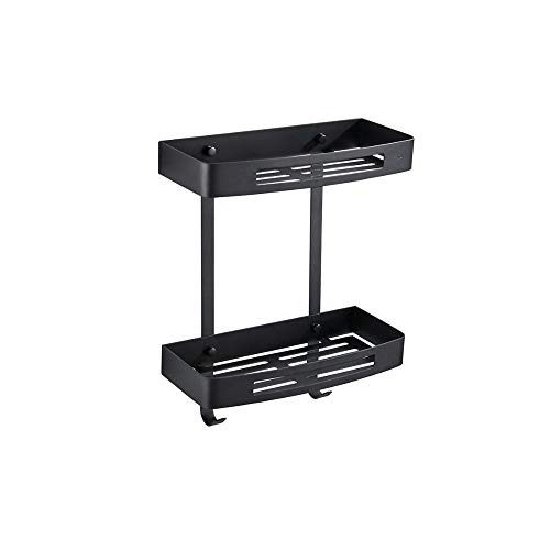 devesanter bathroom Shelf Organizer Rack, 2 Pack 60cm Adhesive Drilling bathroom storage Basket, Wall Shower Inside Organization and Storage Decor Accessories(Black with 6 Hooks)