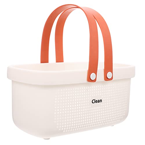 minkissy Handheld Shower Basket and Toiletry Holder, Portable Plastic Bathroom Storage Basket for Desktop Organization, White Bathroom Storage Container for Home and Travel