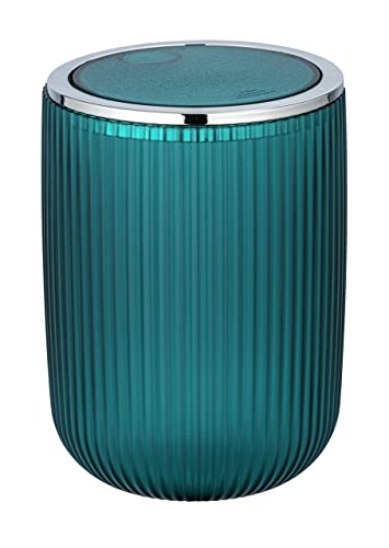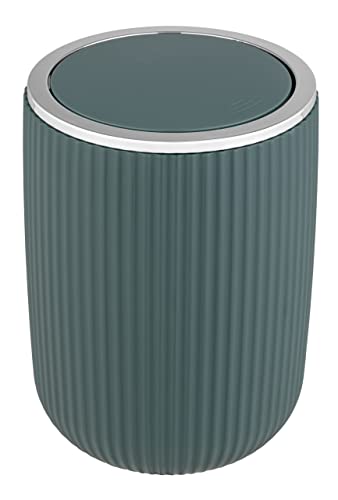 WENKO Agropoli S swing bin, dark green, 2 litres, bathroom waste bin with lid, waste bin made of high-quality plastic with sculptural design & textured surface, Ø 14.5 x 20 cm
