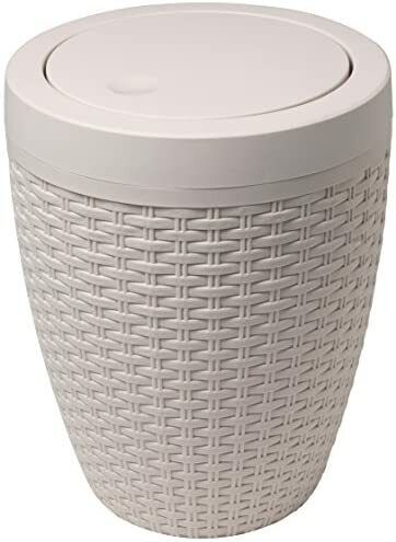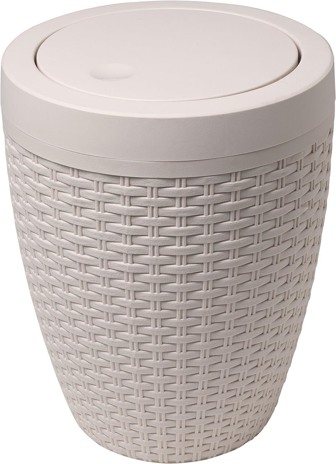 515799 Faux Rattan round Bathroom Bin with Swing Lid, Calico Linen, L 22.5 Cm, W