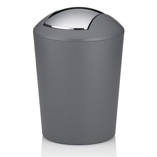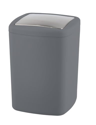 Wenko Inca swing bin, 5 litre capacity, waste bin for guest WC, bathroom cosmetic bin with lid, waste bin for the kitchen made of plastic, BPA-free, Ø 18.5 x 25.5 cm, anthracite, Charcoal