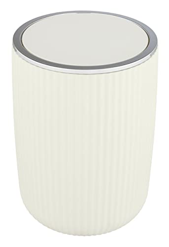 WENKO Agropoli L swing bin, cream white, 5.5 litres, bathroom waste bin with lid, waste bin made of high-quality plastic with sculptural design & textured surface, Ø 19 x 27 cm