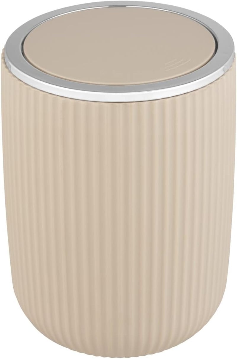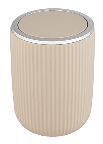 WENKO Agropoli S swing bin, beige, 2 litres, bathroom waste bin with lid, waste bin made of plastic with sculptural design and textured surface, Ø 14.5 x 20 cm
