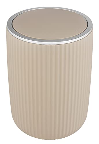 WENKO Agropoli L swing bin, beige, 5.5 litres, bathroom waste bin with lid, waste bin made of high-quality plastic with sculptural design and textured surface, Ø 19 x 27 cm