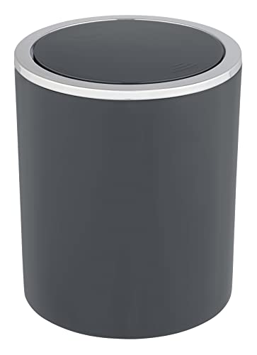 WENKO Inca Cosmetic Bin, 2 Litre Capacity, for Guest WC, Bathroom Waste Bin With Swing Lid, Small BPA-Free Plastic Bin, Ø 14 x 16.8 cm, Anthracite