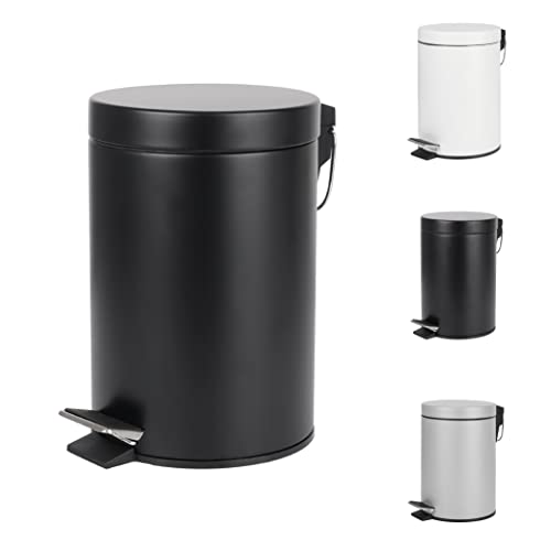 Home Treats Bathroom Bin 3L- Small Pedal bin for Bathroom Bin With Lid, Soft Close Hinge, Toilet, Restroom Stainless Steel Rubbish Waste Bin with Removable Inner Bucket Silver White Black (Black)