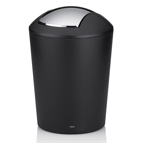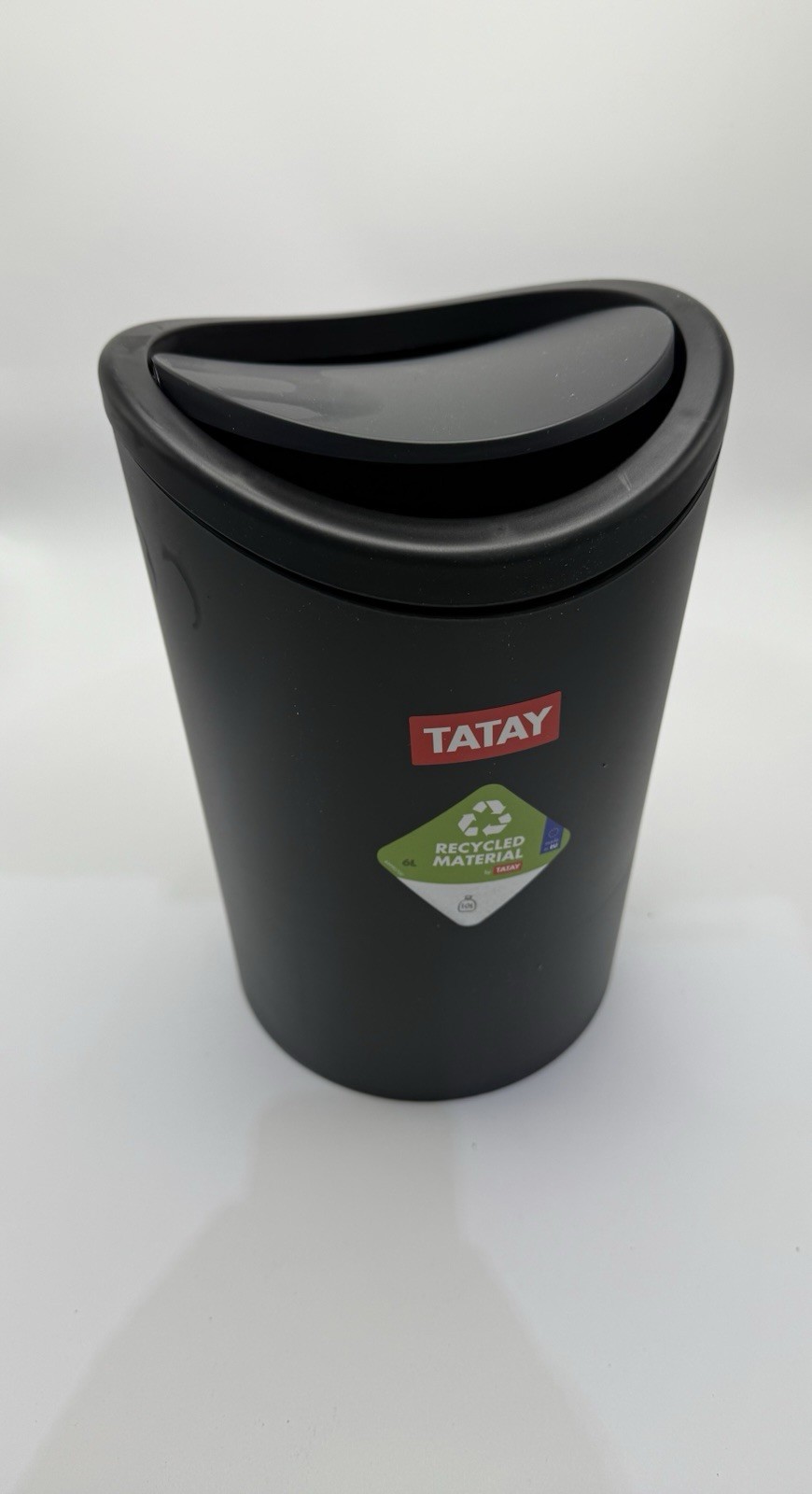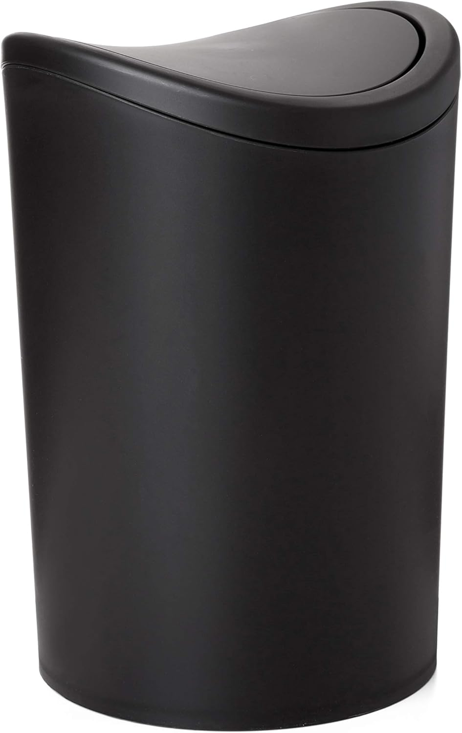 TATAY Bathroom Bin with Tilting Lid, 6L Capacity, Polypropylene, BPA Free, Black