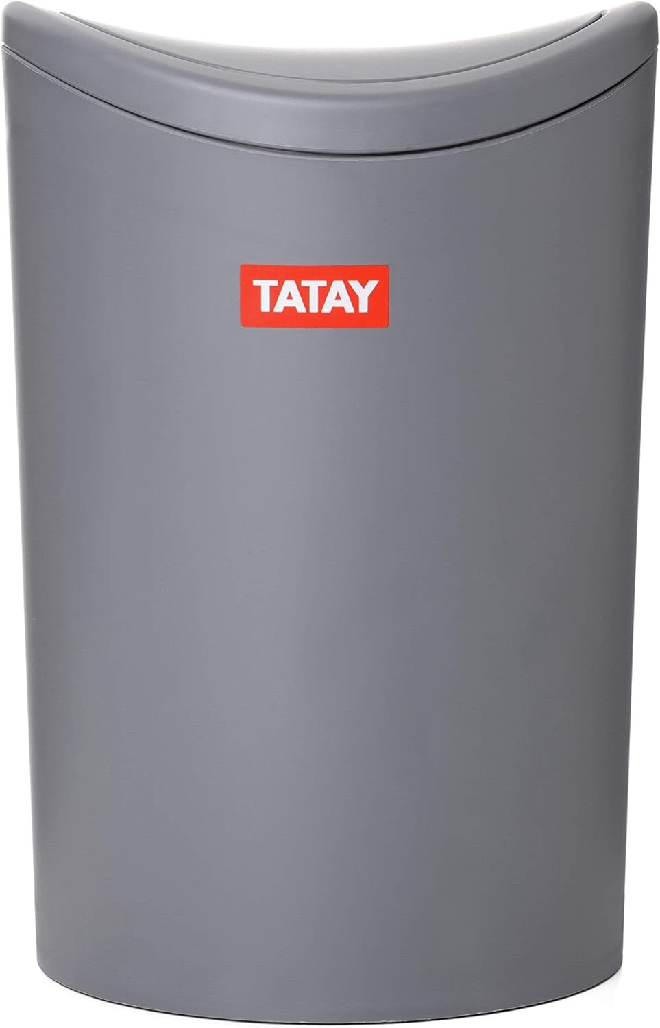 TATAY Bathroom Bin with Swing Lid | Compact and Modern Design | Durable Plastic