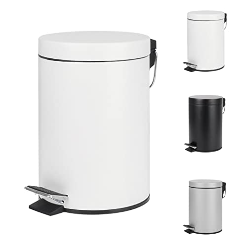 Yourcasa Bathroom bin 5L with lid [Softclose] - Stylish Design - Bedroom small and slim toilet trash can with pedal [Non Slip] sanitary cosmetic dustbin - toilet trashcan waste rubbish trash (White)