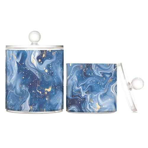 tplaotee Blue and White Marble Clear Plastic Makeup Organizer Storage with lid Bathroom Essentials Decorstorage bin for Cotton Swabs, Paper Clips,s 2 Pack