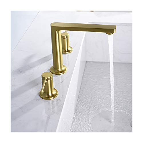MOCHAMIK Elegant Gold Brushed Bathroom Faucet - Solid Brass Bridge Mount Sink Mixer for Hot/Cold Water, 29cm Height, Stylish Kitchen Accessory, & Chic