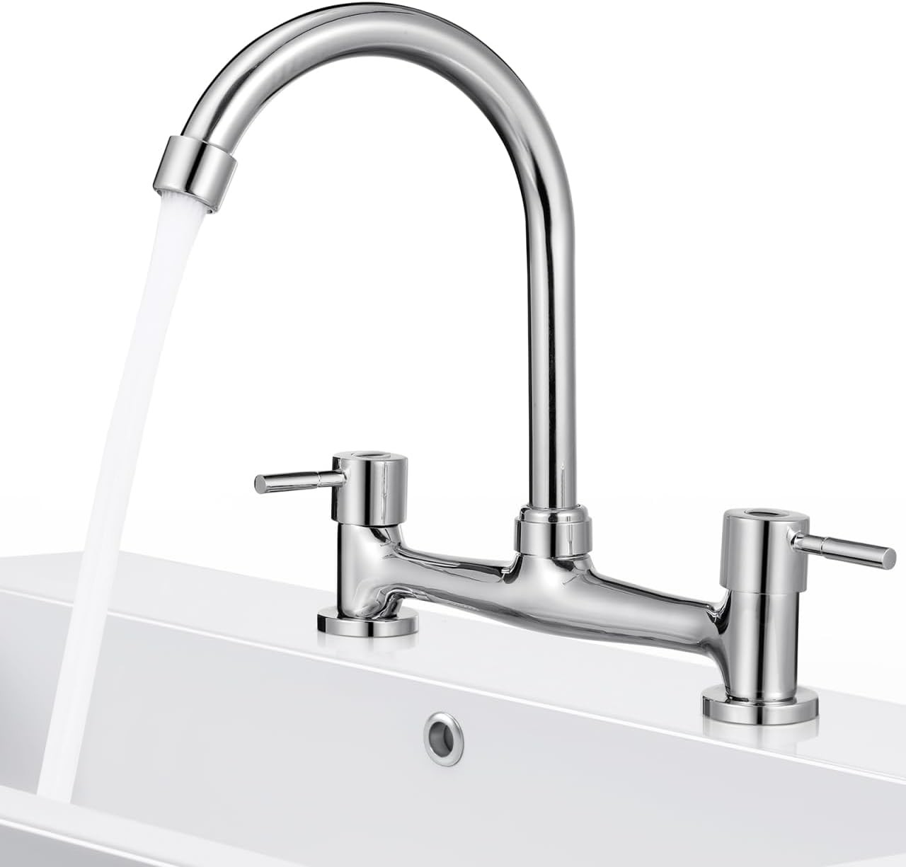 Hemobllo Double Mixer Tap Bathroom Sink Bridge Kitchen Sink Mixer Tap, 2 Hole K
