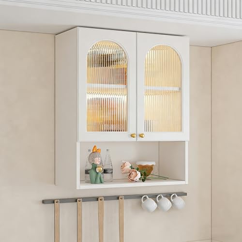 TUPAFJU Wall-Mounted wooden Cupboard with glass Door,Bathroom Storage Cabinets,Medicine Cabinet,wall display rack,Kitchenware Organizer,for Garage(White,60cm/23.6)