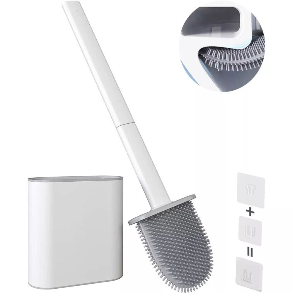 Silicone Toilet Brush & Holder - Wall Mounted Bathroom Cleaning Brush Set UK