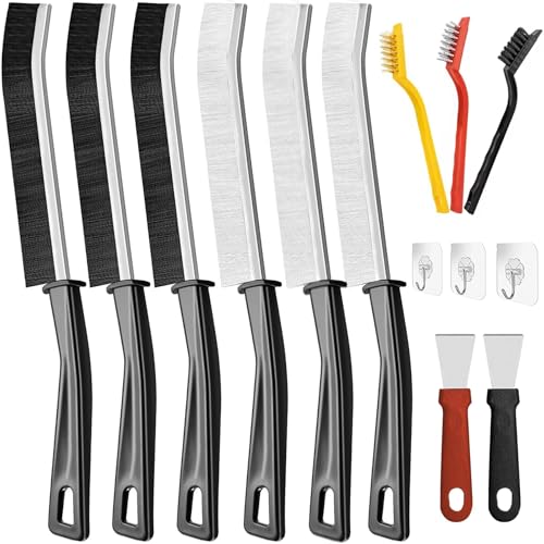 PhieeSeriy 14Pcs Crevice Cleaning Brush 2025, 5MM Hard Bristle Gap Cleaning Brush for Bathroom Tile Window Groove, Bathroom Crevice Cleaning Brush Tool Set with Wire Brush/Scrapers for Home Kitchen