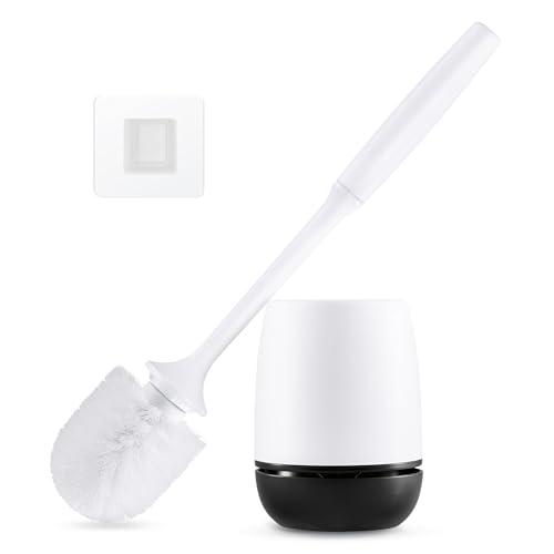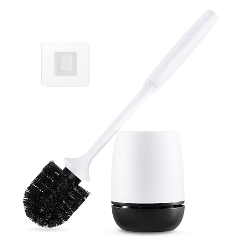 Toilet Brush, Toilet Bowl Brush and Holder Set for Bathroom, Toilet Cleaning Scrubber Brush for Bathroom for Deep Cleaning with Stiff Plastic Bristle, Ventilated Holder, Wall Mount Hook (White Head)