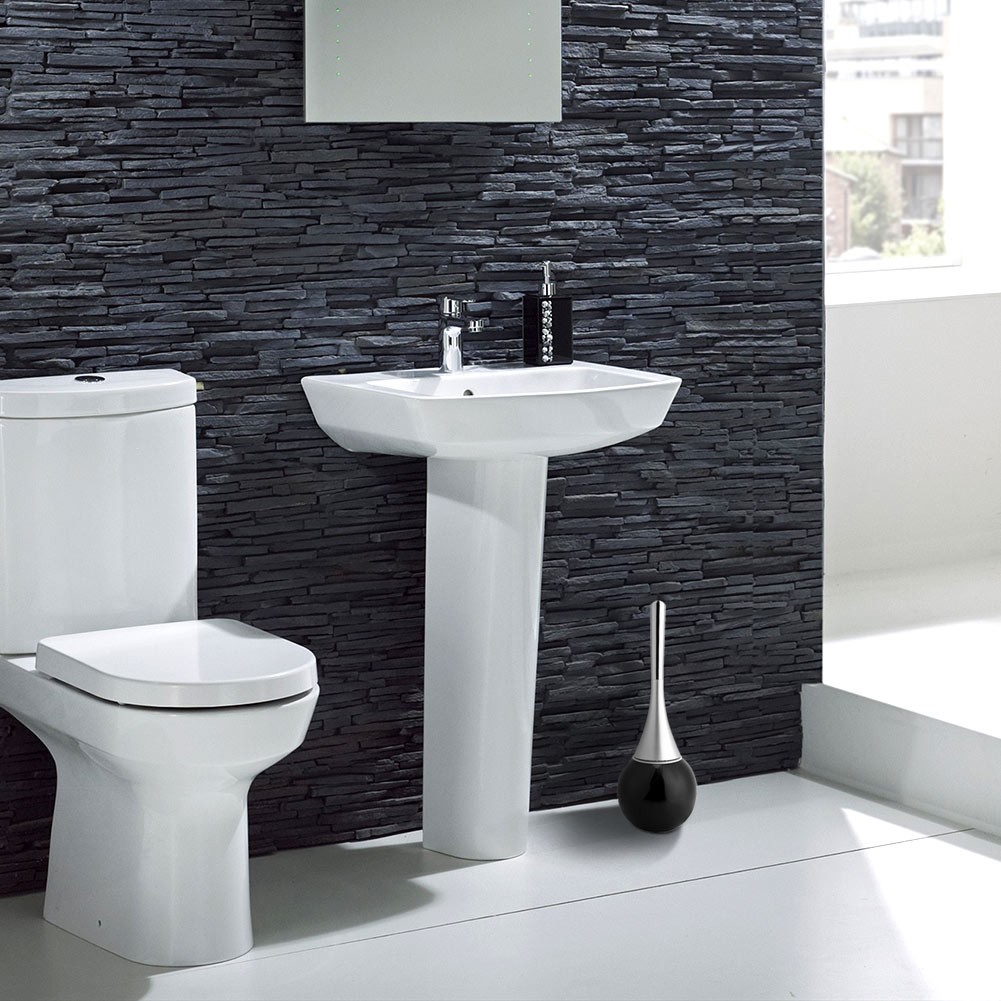 Acacia Plastic Toilet Brush Holder Set Bathroom Cleaning WC Loo Brush Cloakroom