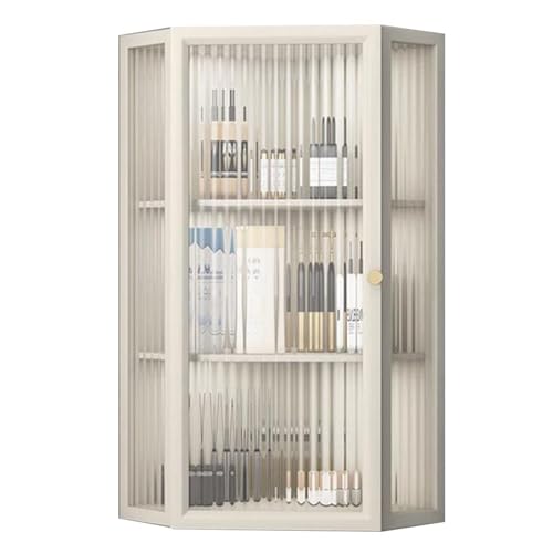 PEBFHSQW Corner Triangular Wall Cabinet Bathroom Wall Hanging Storage Shelves Living Room Multi-layer Organizing Cabinet With Door Kitchen Cupboard Save Space(Beige)