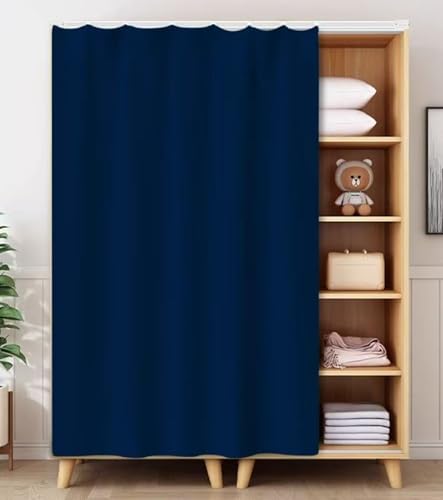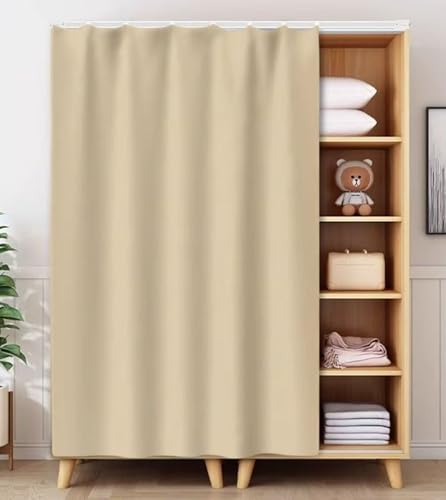 FUELIX Closet Door Curtain for Shoe Bookcase, Cabinet Curtains for Shelves, Bookcase Dustproof Curtain with Track Rail Wardrobe Privacy Curtain Bathroom Partition Curt A4,W120xH140cm