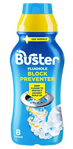Buster Plughole Block Preventer and Drain Cleaner, Prevents Blockages and Build-Up in Bathroom and Kitchen Pipes, Fast-Acting Drain Unblocker Removes Bad Odours, 500ml - Made in UK
