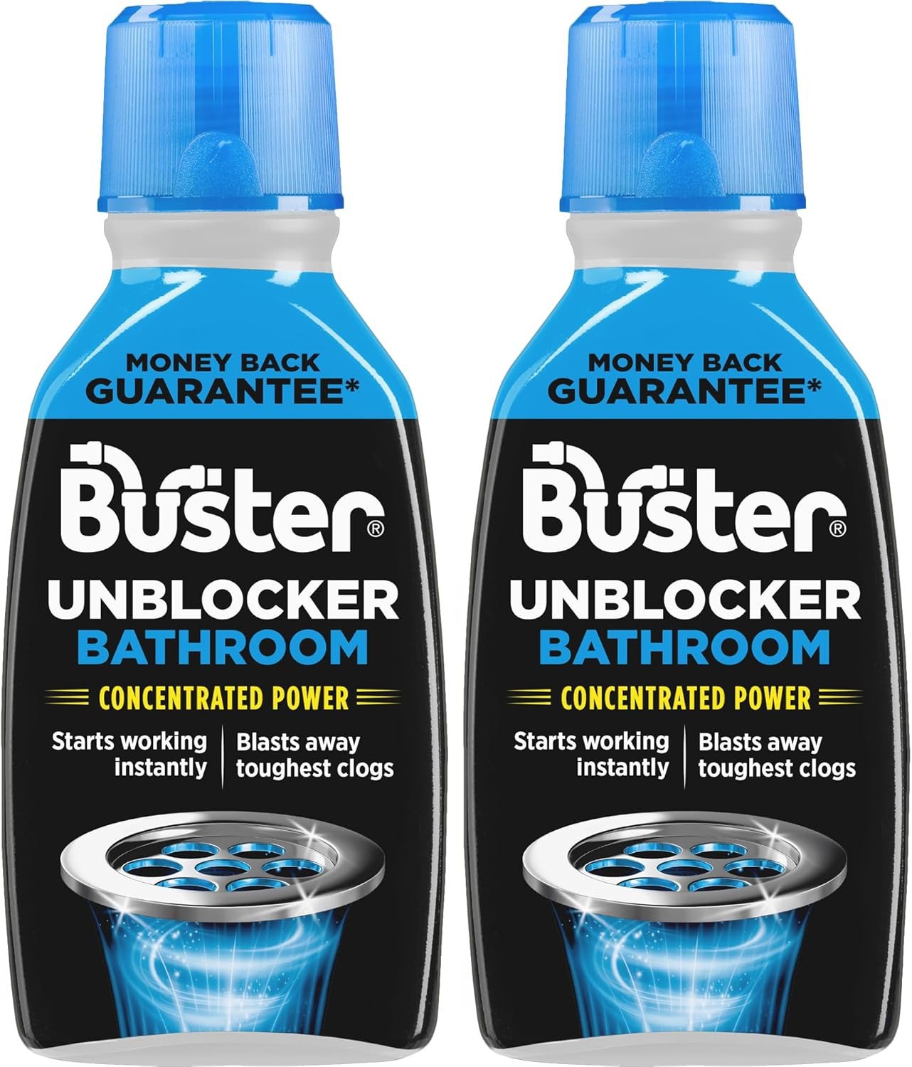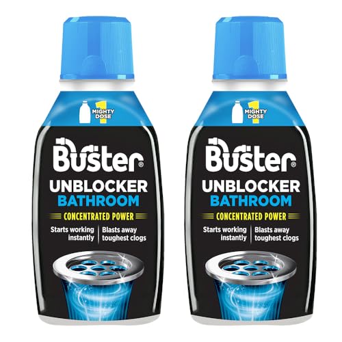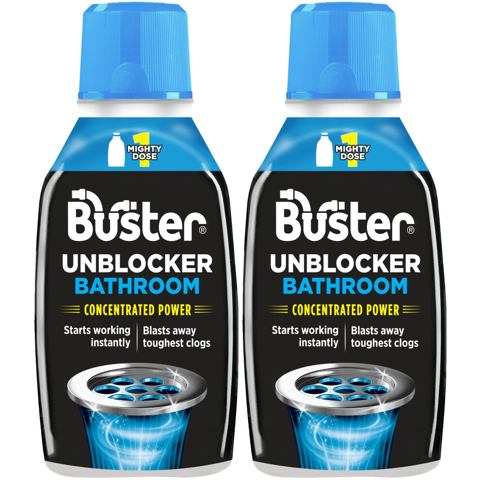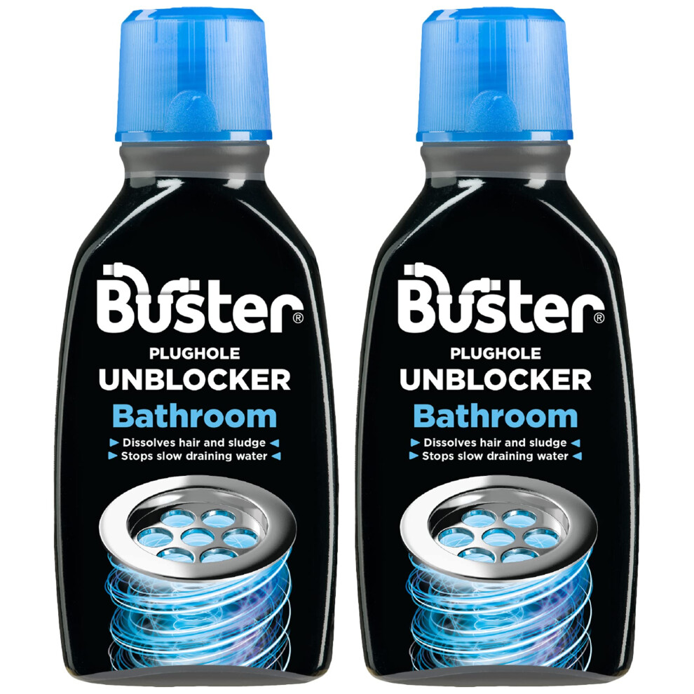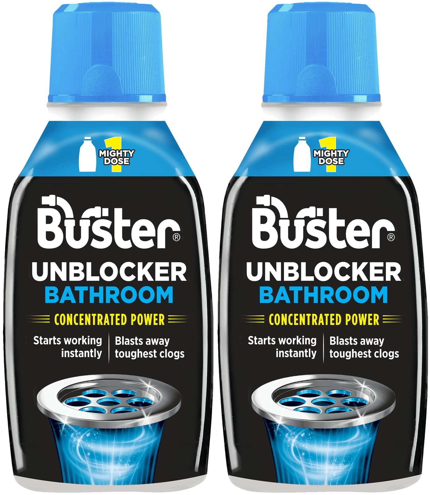 Buster Bathroom Drain Unblocker (Pack of 2 x 300ml) Fast-Acting Sink Unblocker Dissolves Hair, Sludge and Soap, Drain Cleaner Clears Blockages in Shower, Bath and Bathroom Sink Pipes - Made in UK
