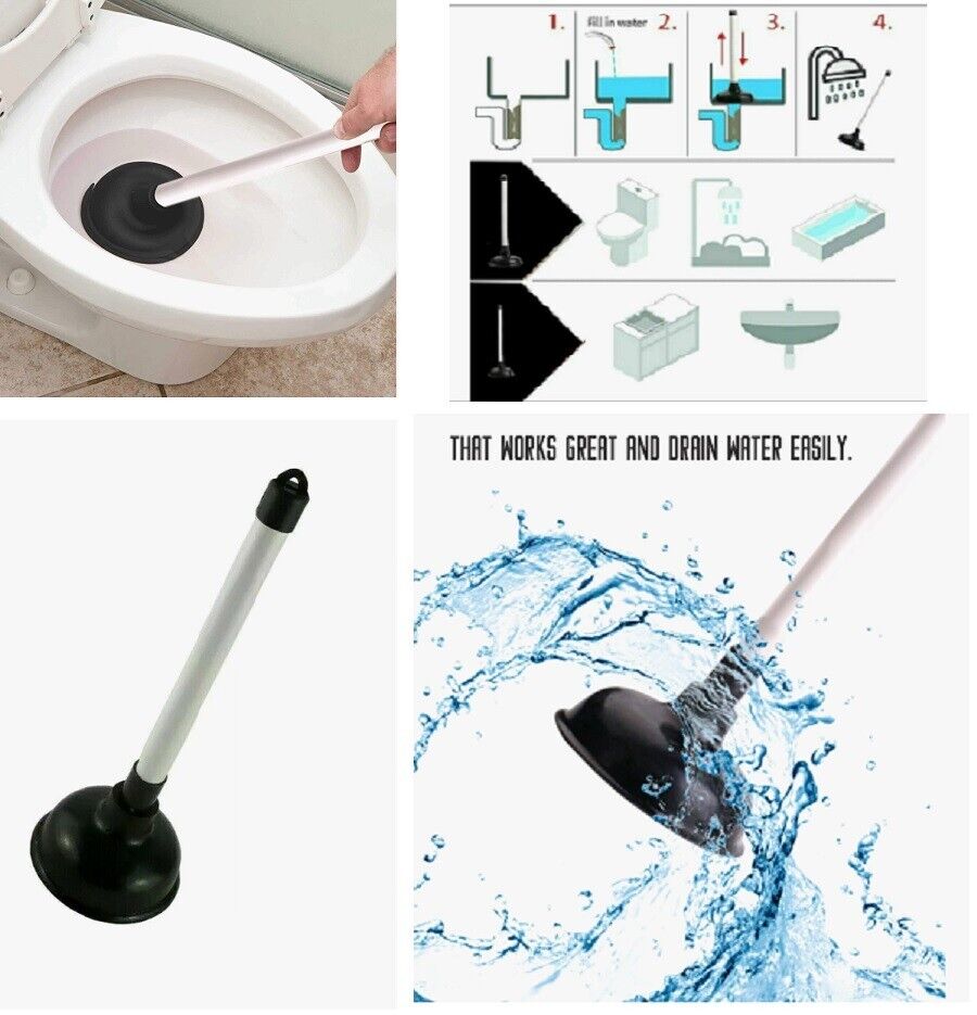 Toilet Sink Drain Bath Plunger Heavy Duty Rubber Unblocker Bathroom Kitchen L