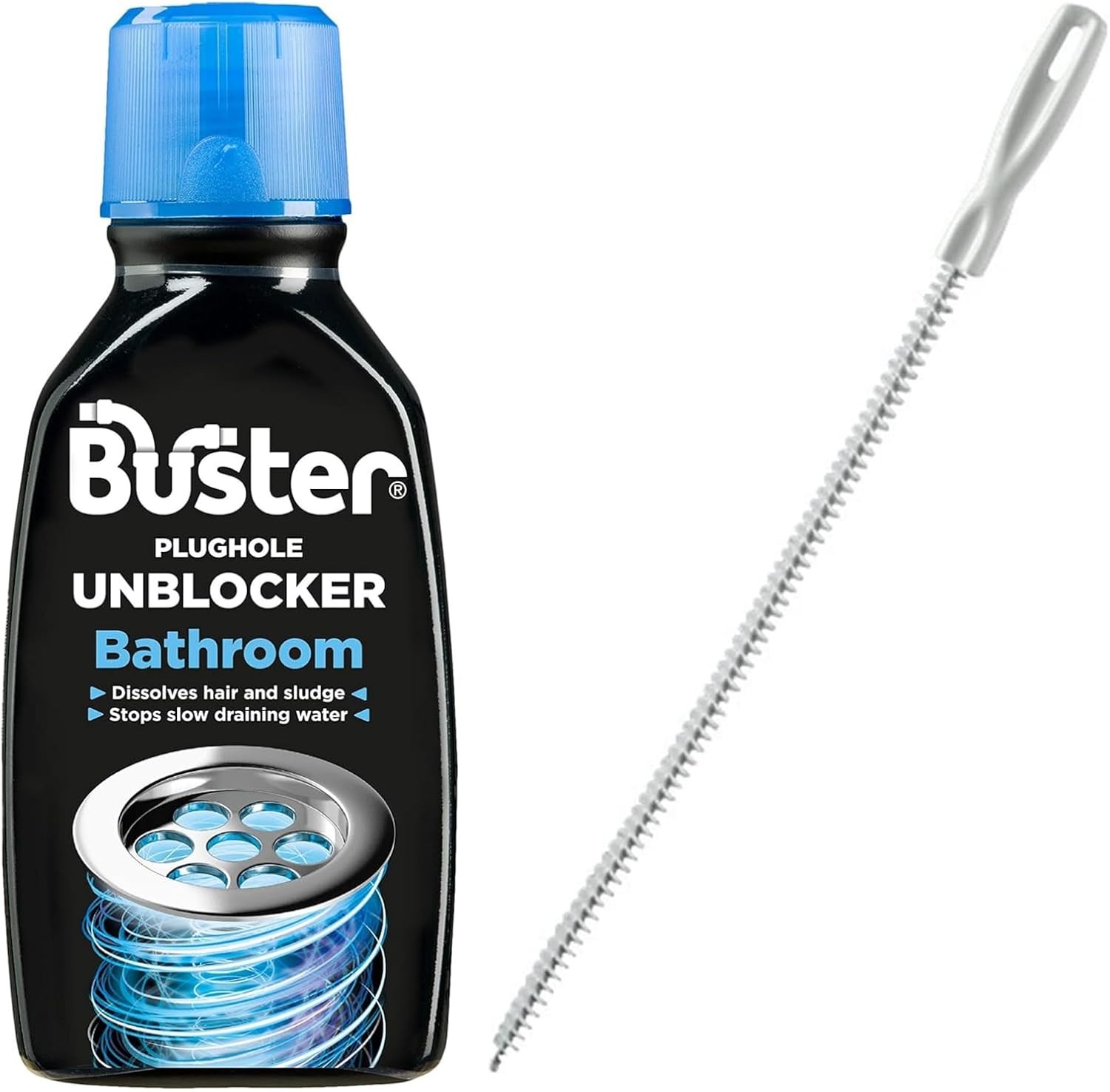 Buster Bathroom Plug Unblocker & Drain Snake Unblocker Kit ? Heavy Duty Drain Unblocker Liquid to Unblock Toilets and Sinks