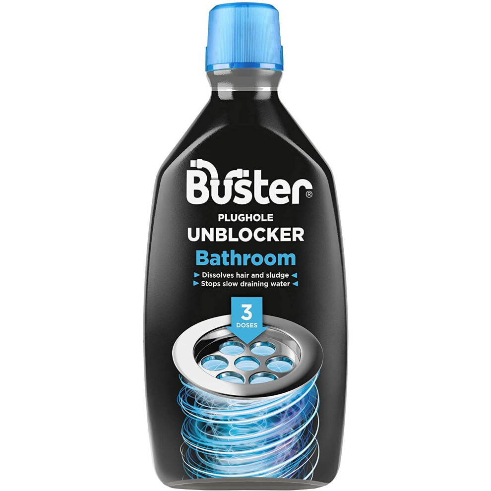 Buster Bathroom Drain Unblocker 600ml â Fast-Acting Plughole and Sink Unblocker, Clears Blockages & Slow-Draining Water