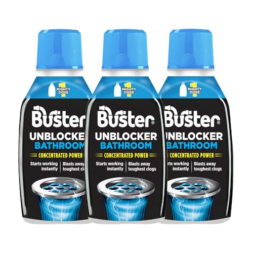 Buster Bathroom Drain Unblocker (Pack of 3 x 300ml) Fast-Acting Sink Unblocker Dissolves Hair, Sludge and Soap, Drain Cleaner Clears Blockages in Shower, Bath and Bathroom Sink Pipes - Made in UK