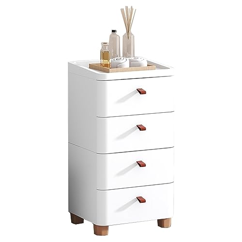 Bedroom Chest of Drawers, Wood 4 Drawers Cabinet Narrow Storage Organiser Unit, Bedroom Furniture Bedside Cabinet, White Freestanding Storage Cabinet for Bathroom/Bedroom/Living Room, 30x30x82cm