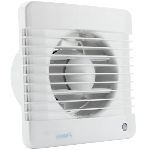 VENTS Silenta 100mm (4-Inch) Diameter Bathroom Extractor Fan with Humidity Sensor and Run-on-Timer. Outer size 157x159x21mm. Low energy consumption - White