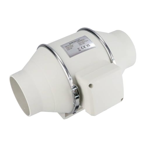 Inline Bathroom Extractor Fan 100mm /4 Inch, In Line Duct Fan Mixed Flow 220m³/hr - Grow Room Fan Tent Hydroponic Ventilation System
