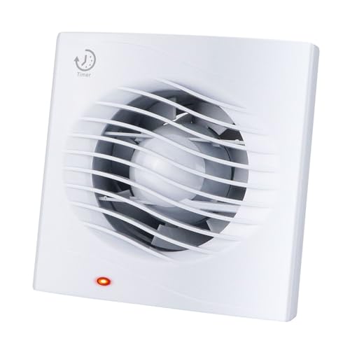 Anesty 4” Bathroom Extractor Fan with Timer, 12W 130m³/h Silent Exhaust Fan 100mm with Check Valve - Bathroom Kitchen Toilet Window/Wall Mounting