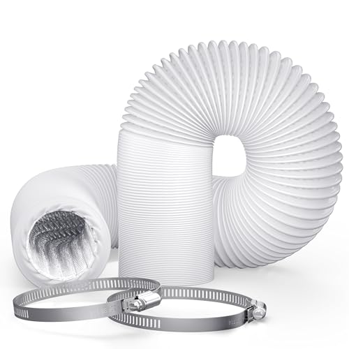 Adair 4inch x 10ft (3M) Air Conditioning Hose Ducting Tumble Dryer Vent Hose 100mm White Duct, Wide Long Flexible Aluminium PVC Air, Includes Clamps, Bathroom Extractor Fan (3 Metre)