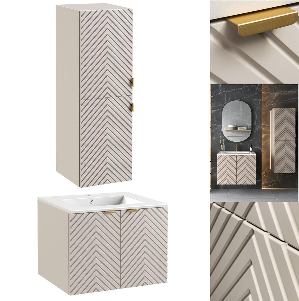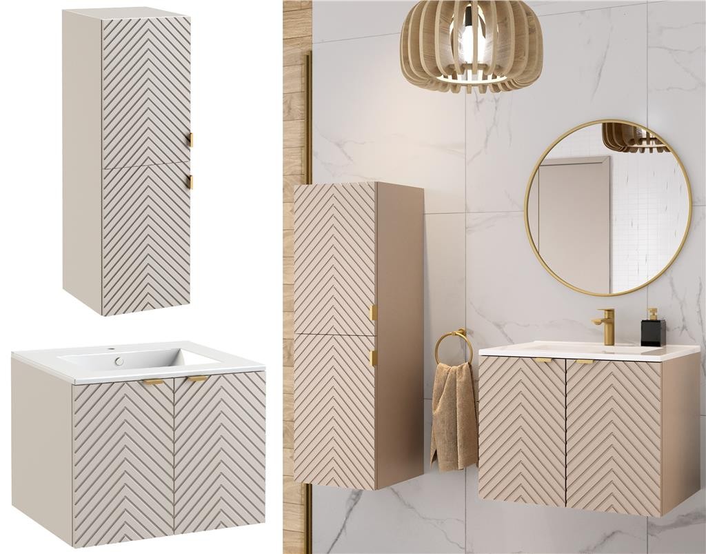 Bathroom Vanity Unit 600 Worktop Tallboy Cabinet Beige Fluted Furniture Set Cama