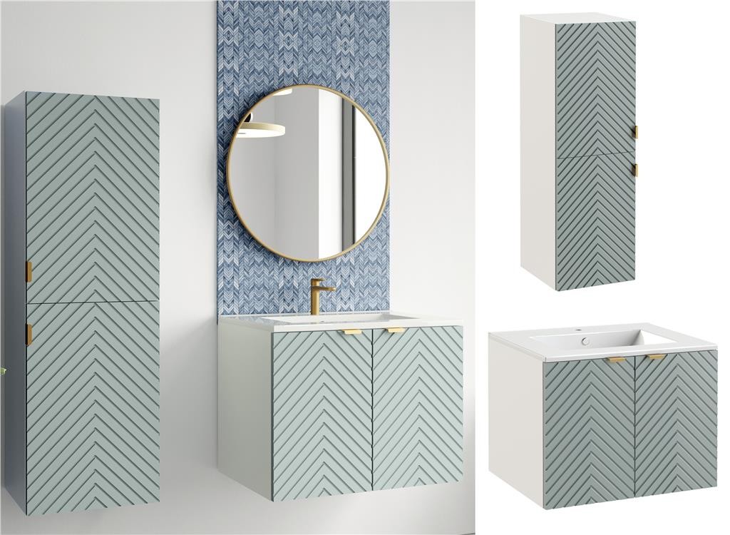 Bathroom Cabinet Set 600mm Wall Hung Vanity Tallboy Units Green Herringbone Cara
