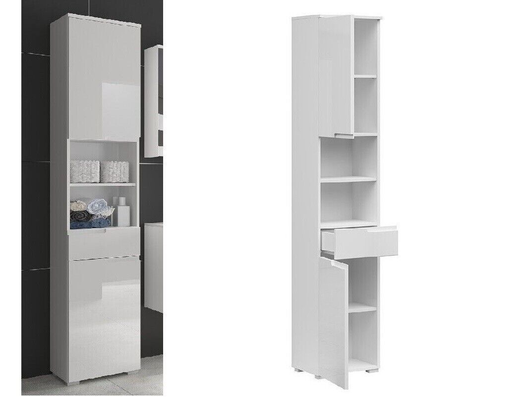 Tall Bathroom Cabinet Slim Tallboy Cloakroom Wall Storage Unit White Gloss Aruba