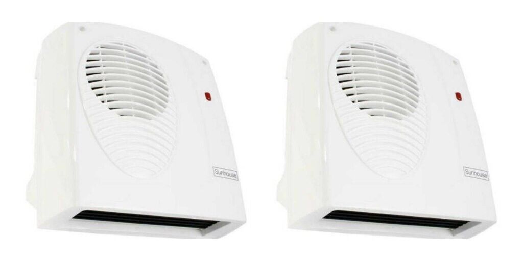 2 x Sunhouse SDF2E Wall Mounted Downflow Bathroom Fan Heaters 2kW