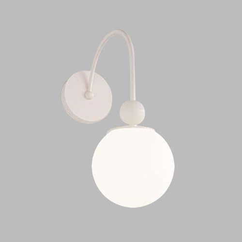 Yzzthumss Glass Lampshade LED Wall Lamp Sconce Beside Wandlamp Applique for Bedroom Living Room Bathroom Mirror Stair Lighting WHITE