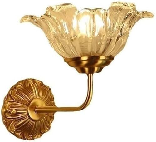 LYGSWDB Wall Lamps Sconces American Retro All-Copper Indoor Wall Sconces,E 26 Screw Glass Lampshade Wall Light, Bedroom Bedside Background Wall Lamp, Balcony Bathroom Corridor Staircase Lighting F