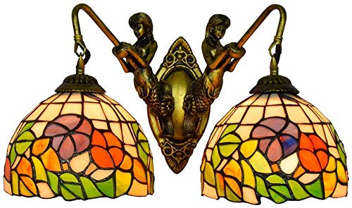 ISCBAFYX Wall Lamps Sconces Style Double Head Wall Lights, 20 cm Stained Glass Lampshade, Bathroom Mirror Headlight Bedside Wall Lamp Indoor Lighting