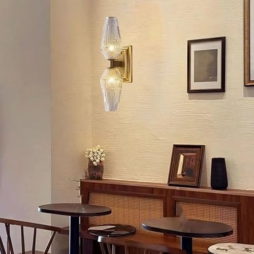 LXYAYY Modern Brass Wall Lamp Clear Glass Bedroom Parlor Dining Room Bathroom Sconce G9 Bulb Gold Copper,Quick Installation(Warm Light,2 Lights)