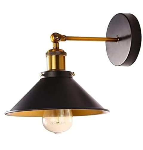 LEDSone Metal Black Wall Sconce Antique Gold Inner Cone Shape Industrial Wall Light E27 Bulb Base Light Fixtures Indoor for Bar Restaurants Living Room Bedroom Bathroom Hallway Balcony Stairs.